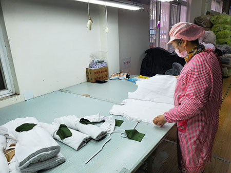 生地検査・製品検査を行い現物商品につきまして、工場においても当社QCの厳しい確認を行います。